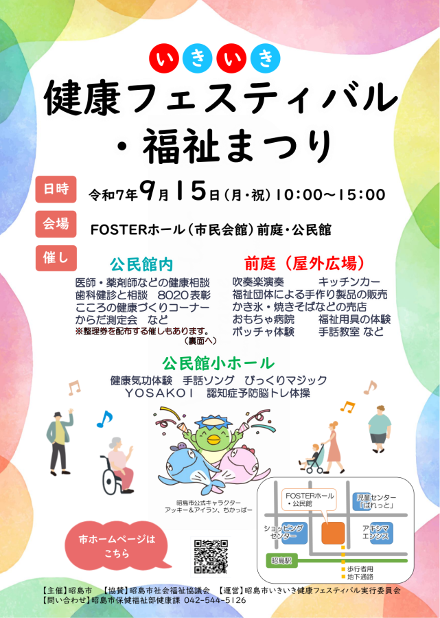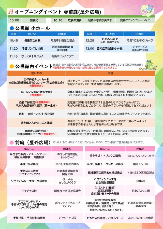 市内福祉事務所による模擬店、健康相談・健康測定会、ステージ発表など