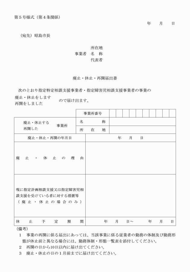 ○昭島市指定特定相談支援事業者及び指定障害児相談支援事業者の指定等に関する規則